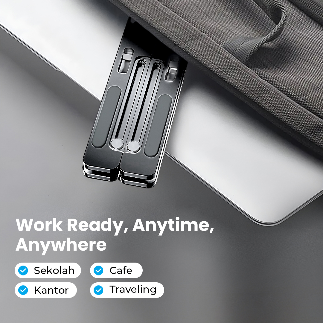 | Bawa dan Gunakan Kapan Saja Model lipat yang ringkas membuat laptop stand jadi perlengkapan kerja yang wajib dibawa saat WFA atau WFC. |