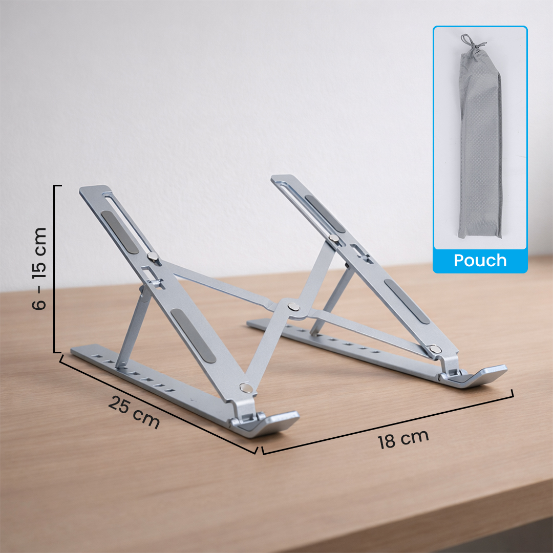 | Ukuran Universal untuk Semua Laptop Hadir dengan ukuran 25 cm, laptop stand ini dapat digunakan untuk laptop mulai dari ukuran 12 hingga 17 inch. |