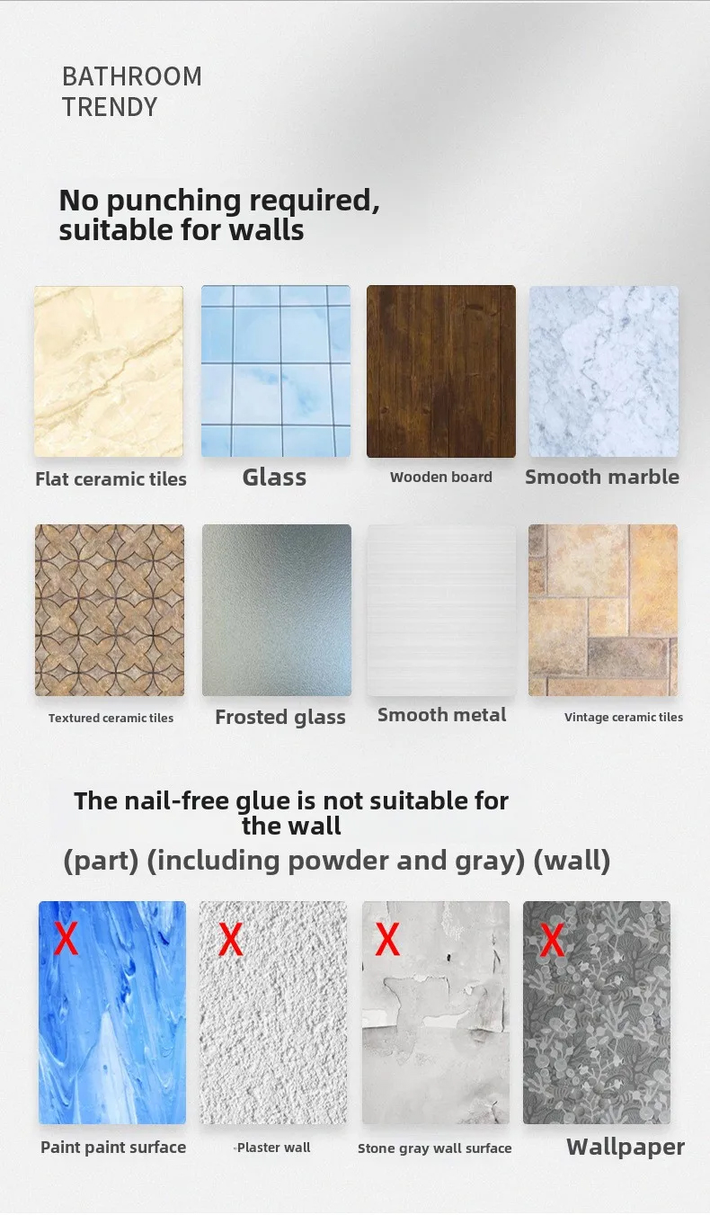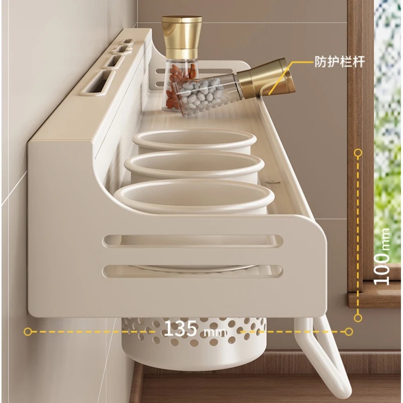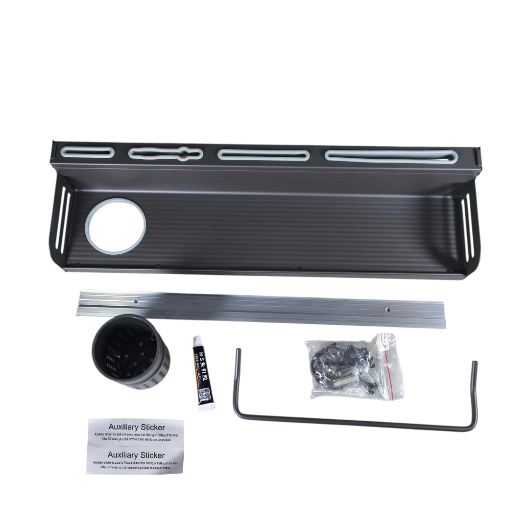 | Pemasangan Mudah Tanpa Bor Tidak perlu melubangi dinding karena rak menggunakan sistem perekat kuat. Cukup oleskan lem pada panel pengait, tempelkan ke dinding, dan tunggu hingga merekat sempurna. Rak dapat menahan beban peralatan dapur harian dengan stabil dan aman. |