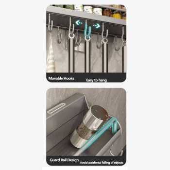 Atur dapur agar selalu rapi dan mudah diakses dengan OLLKY rak dapur multifungsi. Rak ini dirancang untuk menyimpan berbagai peralatan dapur seperti botol bumbu, pisau, sendok, spatula, hingga lap dapur dalam satu tempat. Terbuat dari space aluminium berkualitas, rak ini kokoh, ringan, dan tahan karat, sehingga aman digunakan di area dapur yang lembap. Cocok digunakan di dapur rumah, apartemen.