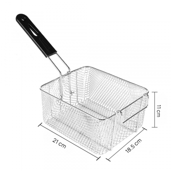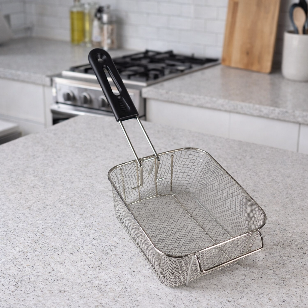 | Solusi Praktis Penggorengan Keranjang saringan deep fryer ini sangat cocok digunakan pada berbagai jenis penggorengan. Dirancang untuk menunjang kebutuhan penggorengan, mulai dari kentang goreng, ayam crispy, nugget, sosis,hingga aneka seafood. Fleksibilitas penggunaannya sangat ideal untuk digunakan di supermarket, restoran, snack bar, food truck hingga dapur rumahan. Proses memasak cepat dengan kualitas gorengan tetap renyah dan merata. |