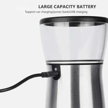 | Tanpa Kabel Melilit Dibekali baterai isi ulang berkapasitas 1200 mAh sehingga penggiling kopi ini dapat digunakan tanpa sambungan kabel daya. Saat dayanya habis, Anda bisa mengisi ulang dayanya menggunakan kabel USB Type-C yang tersedia. |