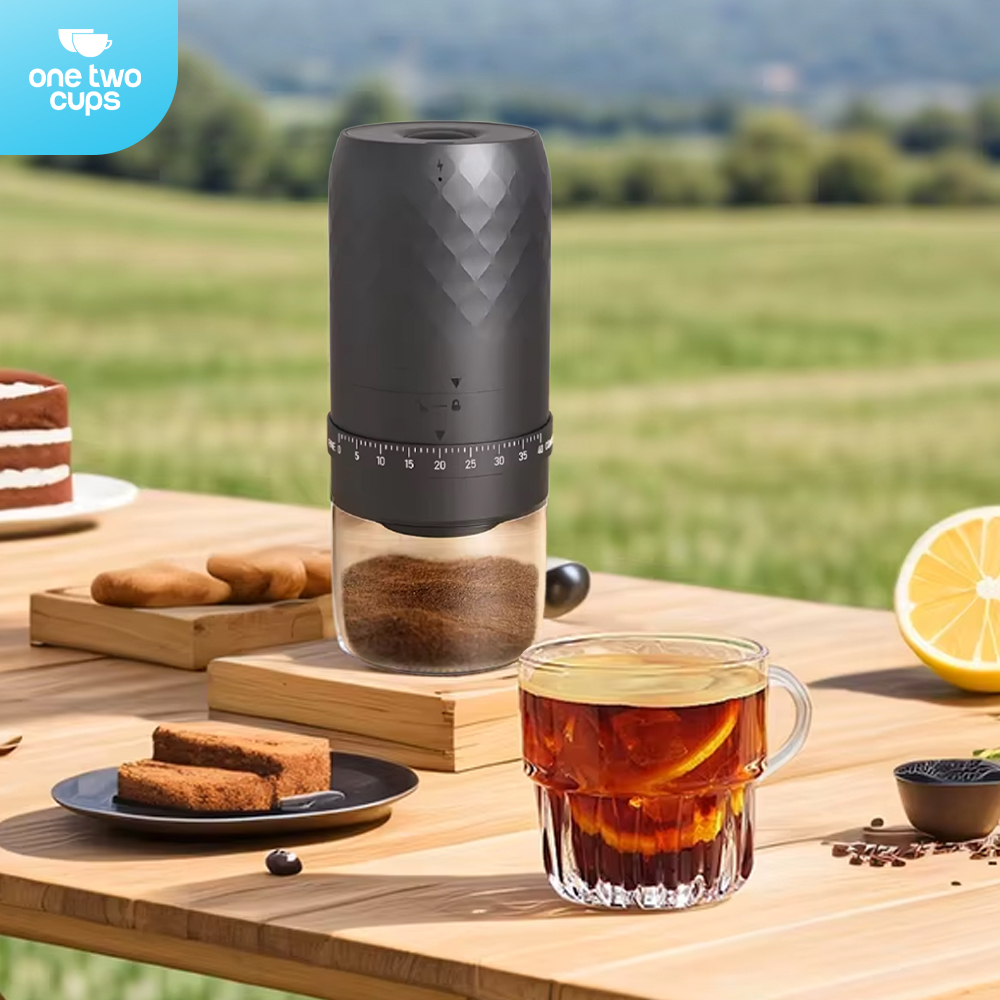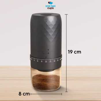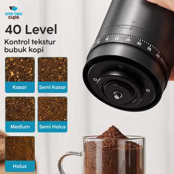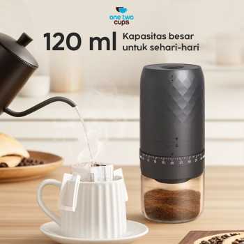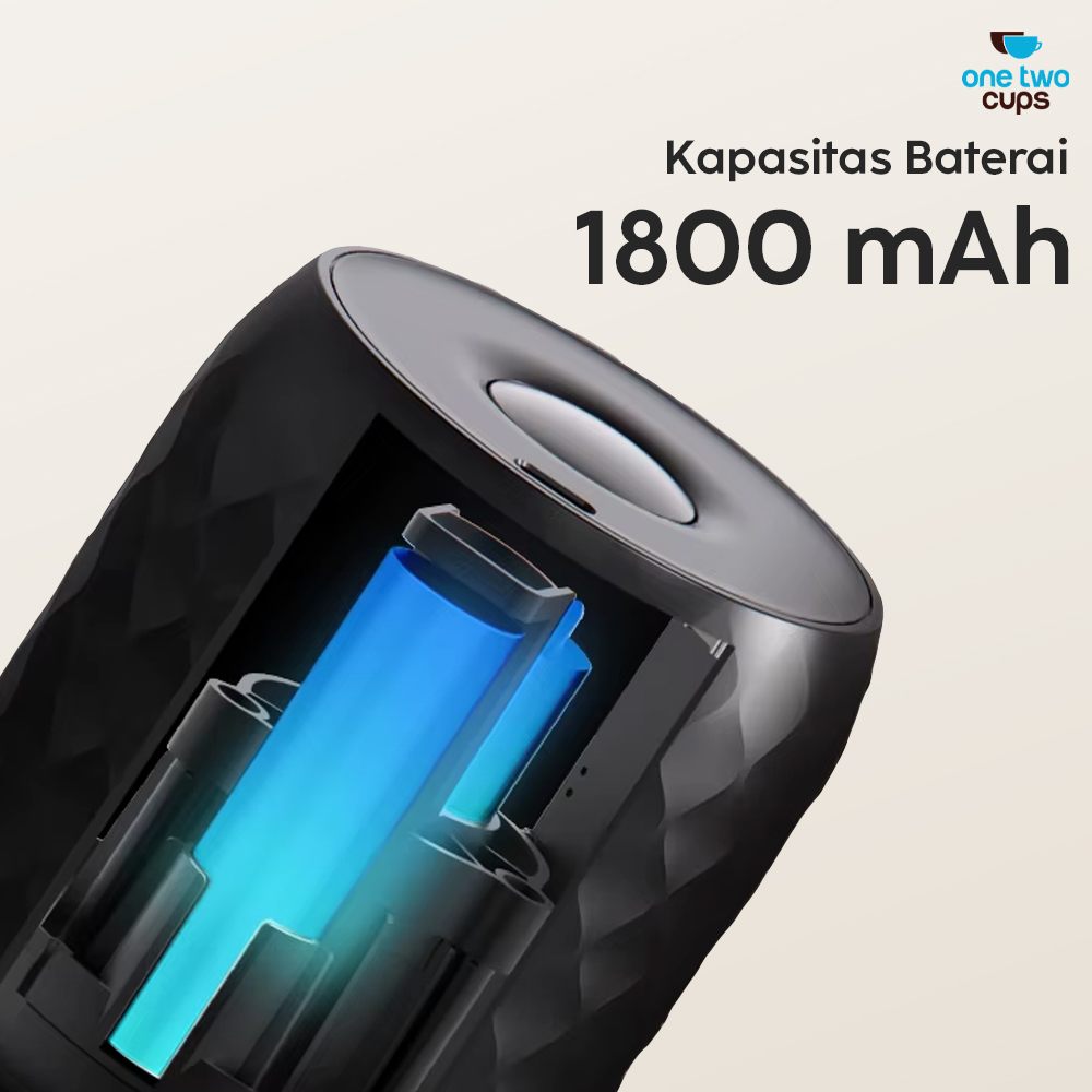 Menggiling biji kopi favorit semakin mudah dengan alat penggiling kopi elektrik dari One Two Cups. Penggiling berbahan keramik, produk dari One Two Cups dapat menghasilkan bubuk kopi yang halus dan konsisten. Adjuster pada bagian tengah mesin membuat Anda bisa mengatur tekstur hasil gilingan kopi sesuai selera. Semakin praktis dengan adanya baterai rechargeable 1800 mAh yang bisa diisi ulang.
