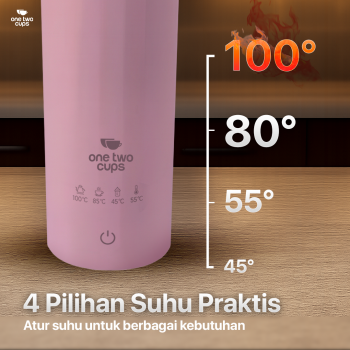 Buat minuman hangat favorit kapan saja semakin praktis dengan termos elektrik dari One Two Cups. Pemanas elektrik yang digunakan dapat memanaskan air mulai dari suhu 45 °C hingga 100 °C. Kapasitas 475 ml pas untuk membuat 1 porsi minuman hangat serta mudah dibawa saat traveling. Semakin aman dengan fitur auto shut-off untuk cegah overheat.