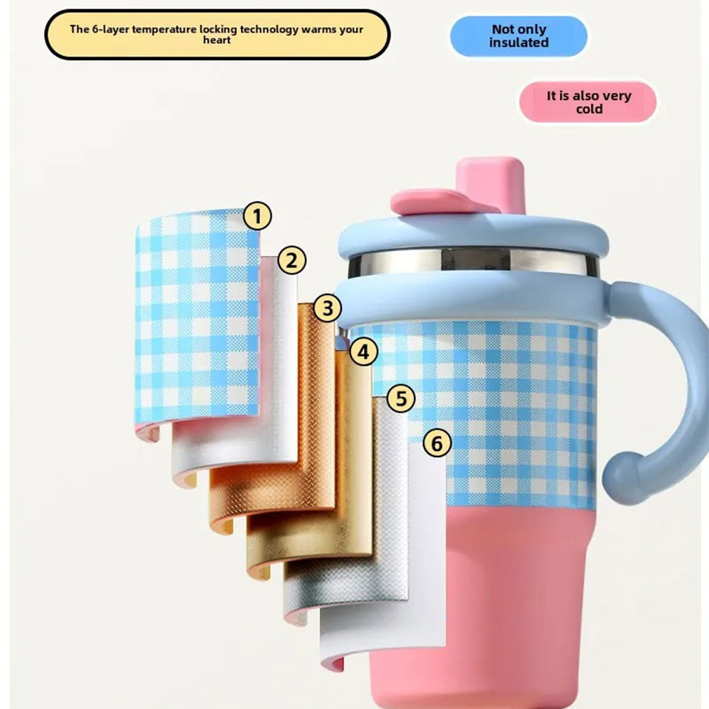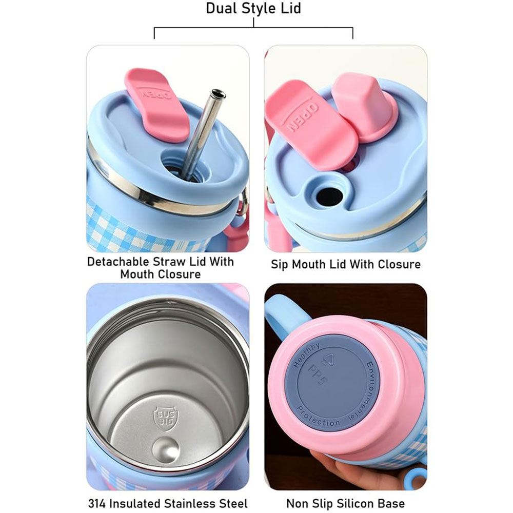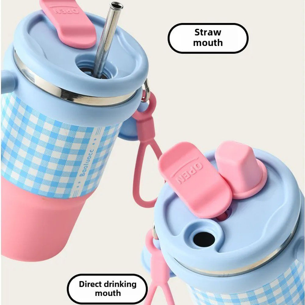 One Two Cups botol minum berkualitas tinggi yang dirancang untuk menjaga suhu minuman tahan lama. Menggunakan stainless steel 316 pada bagian bawah dan 304 pada bagian dalam, botol ini aman untuk air panas maupun dingin. Dilengkapi handle praktis, sedotan serta sistem minum double drinking, cocok untuk aktivitas harian, perjalanan hingga di dalam mobil. Desain motif grid modern tampil stylish dan nyaman dibawa ke mana saja.