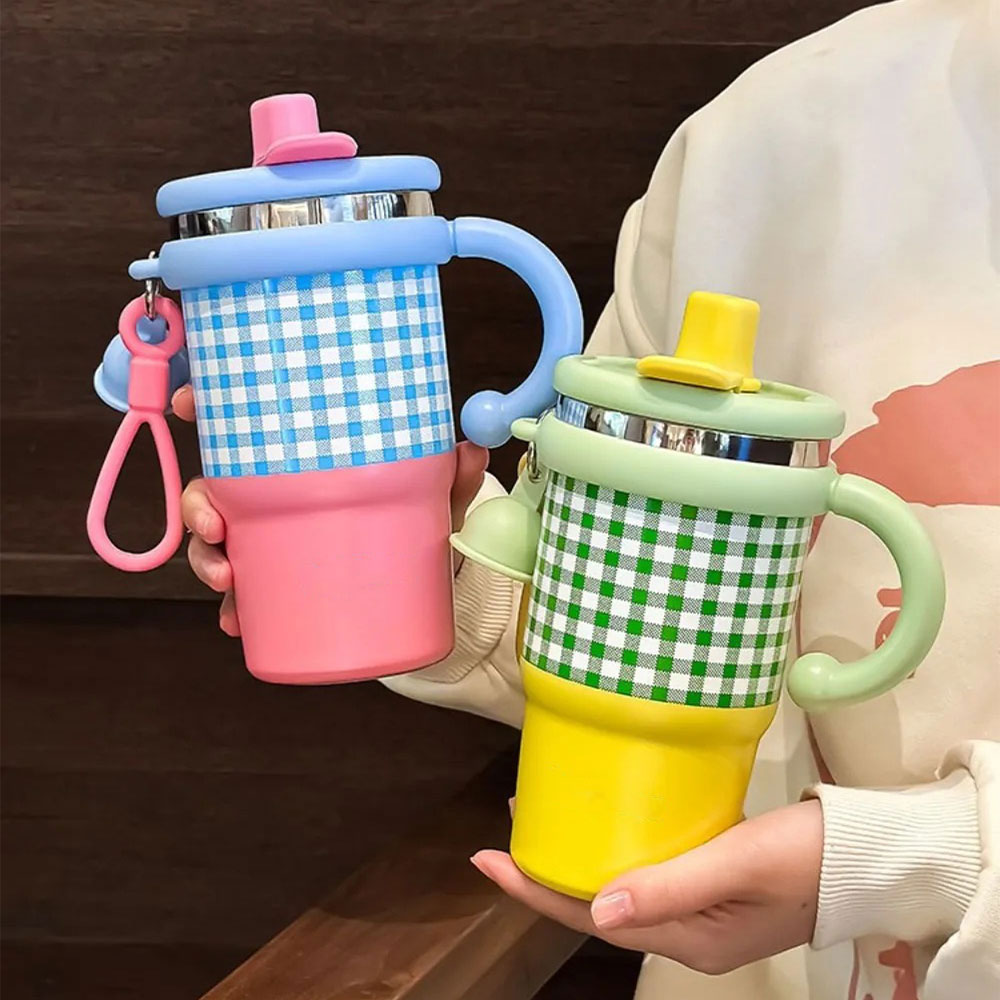 | Desain Modern Dengan Handle Botol minum ini mengusung motif grid (kotak-kotak) yang terlihat elegan dan kekinian, tampil stylish dibanding botol minum biasa. Kombinasi warna blue pink grid serta green yellow grid memberikan kesan fresh dan ceria, cocok untuk segala usia. |