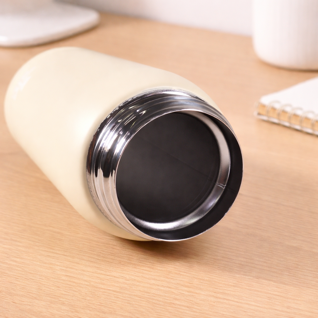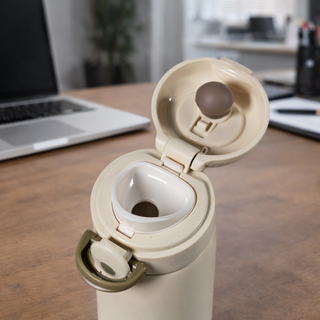 | Kapasitas Ideal Kapasitas 350 ml sangat pas untuk kebutuhan minum harian seperti kopi, teh, atau air putih. Tidak terlalu besar sehingga tetap ringan saat dibawa. Ideal untuk penggunaan pribadi di kantor, sekolah, atau traveling. Solusi praktis untuk hidrasi sehari-hari. |