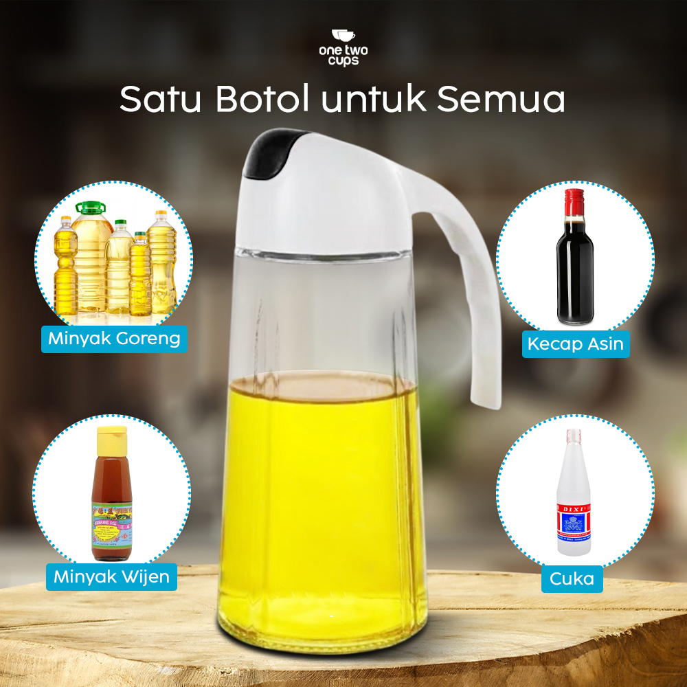 Bermasalah dengan botol minyak biasa yang mudah tumpah dan berantakan? Sekarang saatnya Anda beralih ke produk dari One Two Cups. Botol minyak ini hadir dengan tutup yang membuatnya lebih aman dan tidak mudah tumpah. Tak hanya itu, bagian tutupnya juga dilengkapi handle untuk memudahkan Anda menuang minyak. Semakin lengkap dengan adanya skala volume untuk memastikan banyak minyak yang dituangkan pas.
