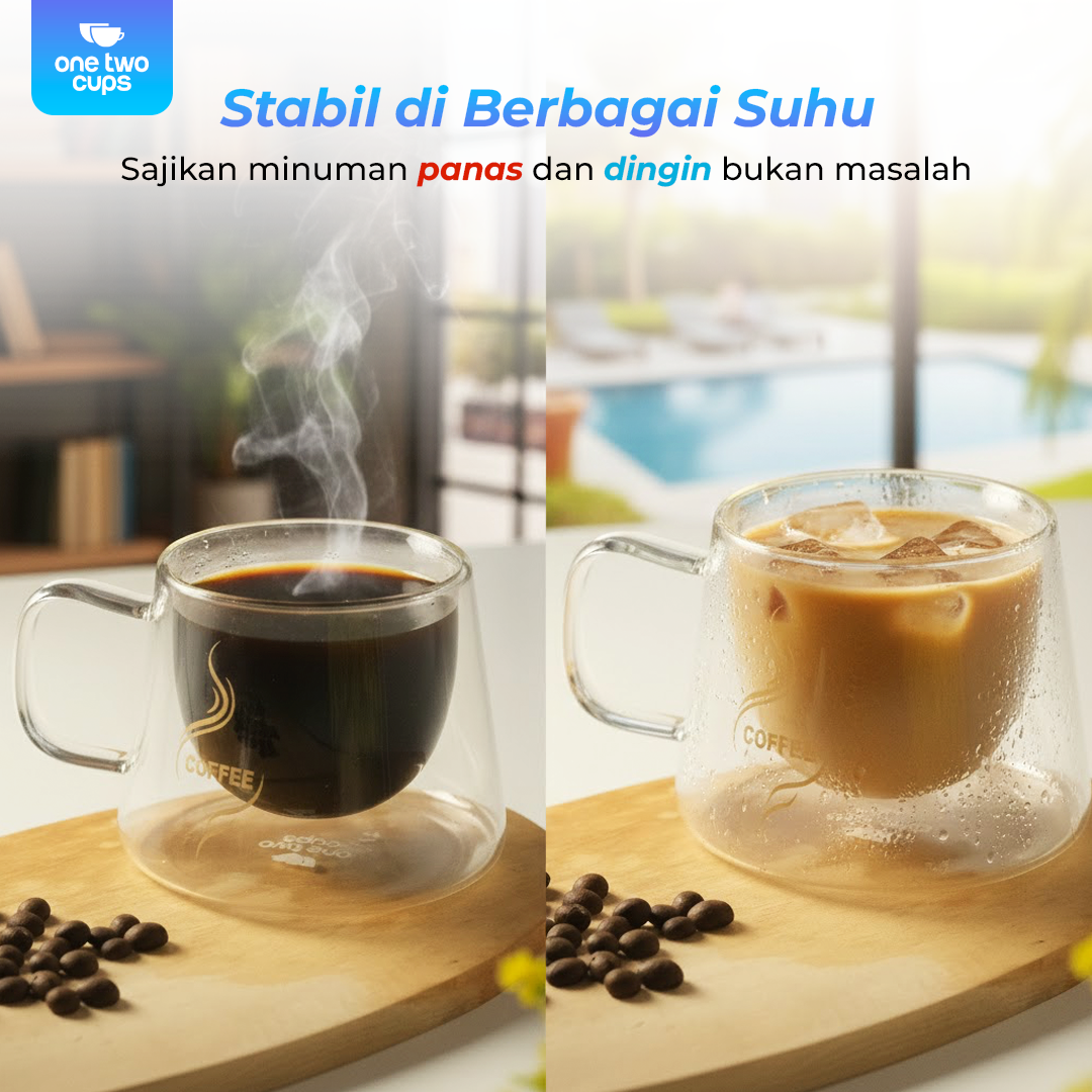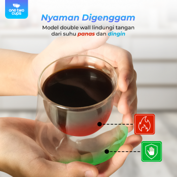 Buat tampilan minuman Anda lebih estetik dengan cangkir kaca dari One Two Cups. Desain minimalis dengan model double wall membuat cangkir lebih nyaman saat dipegang. Terbuat dari kaca borosilikat dengan ketahanan suhu tinggi, kini Anda bisa menggunakan cangkir kaca untuk menyajikan minuman ala cafe di rumah.