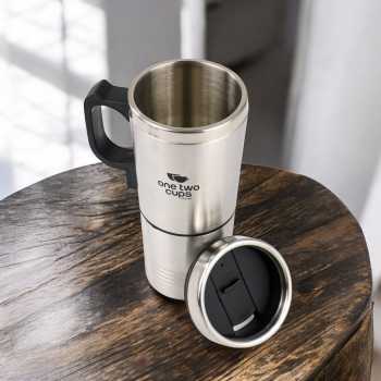 | Kapasitas Sajian Ideal Cangkir pemanas ini terdiri dari sebuah cangkir 350 ml dan gelas 150 ml yang dapat dilepas-pasang. Tak perlu repot mencari wadah tambahan untuk meracik atau menyajikan minuman. Menghangatkan dan menyajikan minuman jadi makin efisien saat bepergian. |