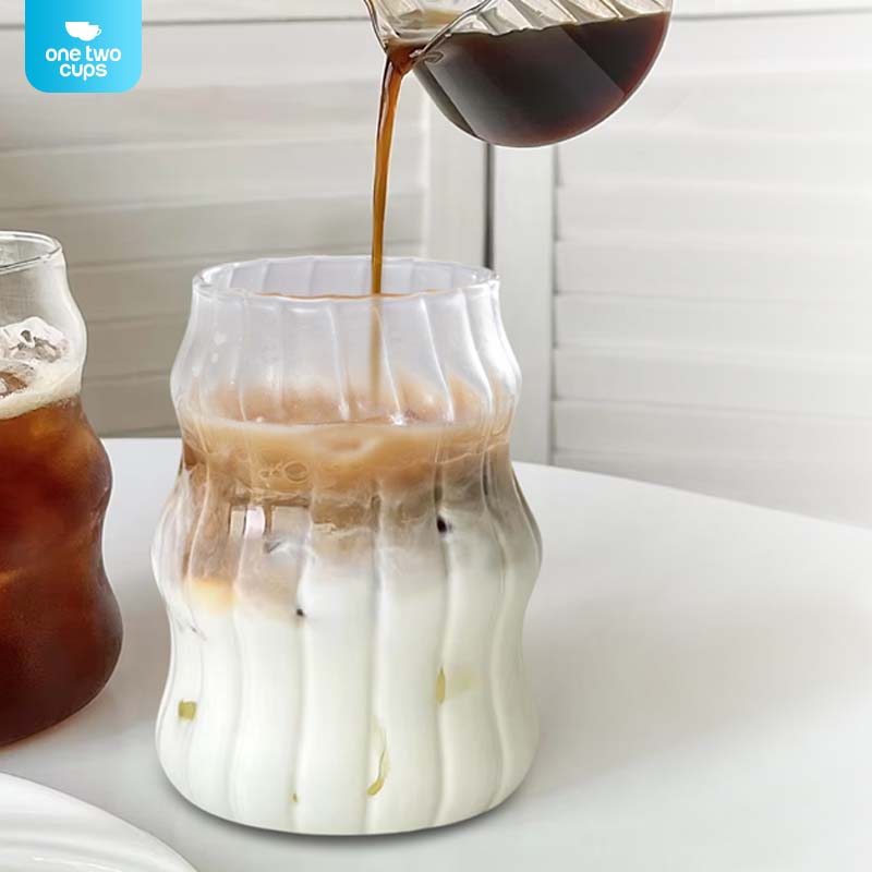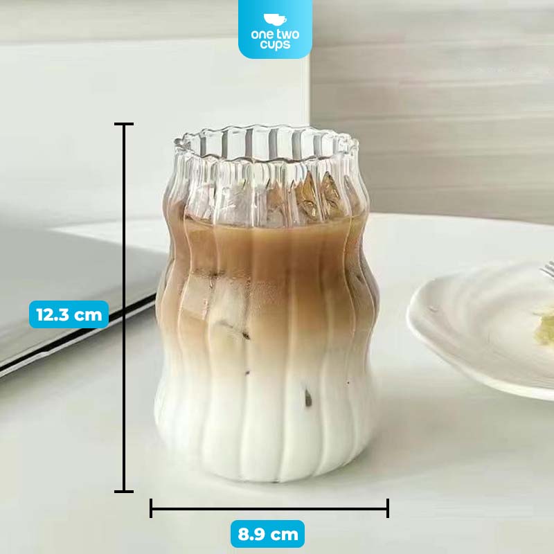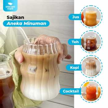 Buat minuman terlihat lebih estetik dengan gelas kaca aesthetic One Two Cups. Desain wave stripe bergelombang memberi tampilan ala cafe. Terbuat dari kaca borosilikat tahan panas, cocok untuk kopi, teh, jus, dan cocktail. Tersedia ukuran 410 ml dan 530 ml.