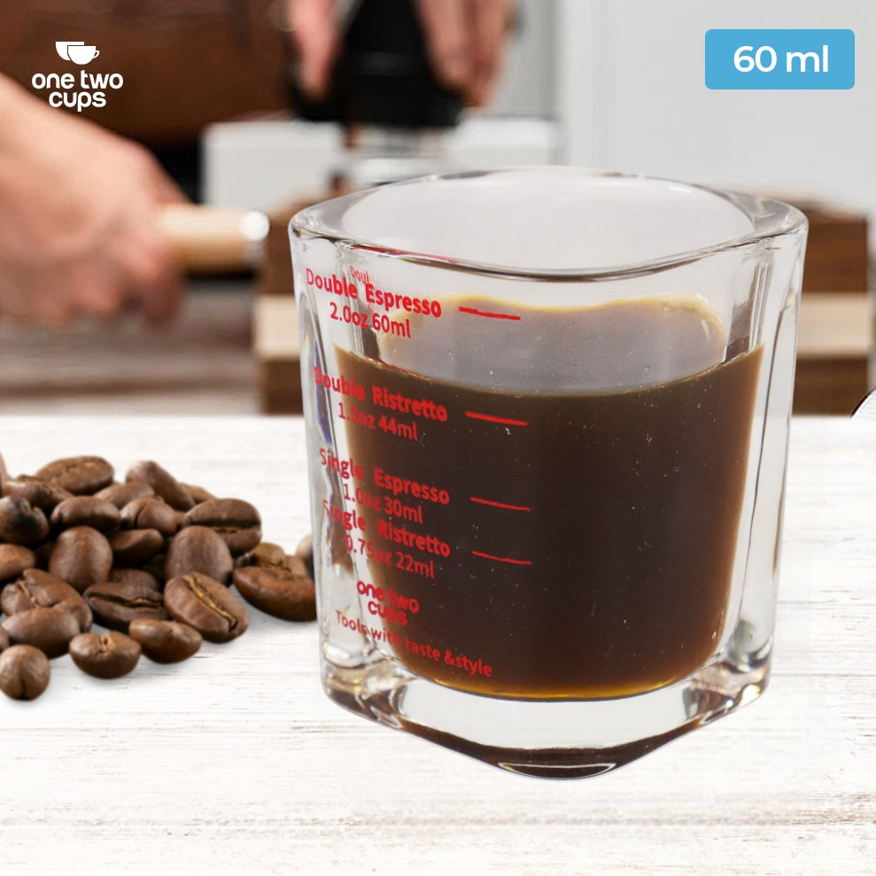 | Kapasitas 60 ml Pas Dibuat khusus untuk pecinta kopi, gelas takar kopi ini memiliki kapasitas 60 ml yang ideal. Anda dapat menggunakan gelas takar kopi dari One Two Cups untuk membuat single hingga double shot espresso dengan hasil yang lebih presisi. |