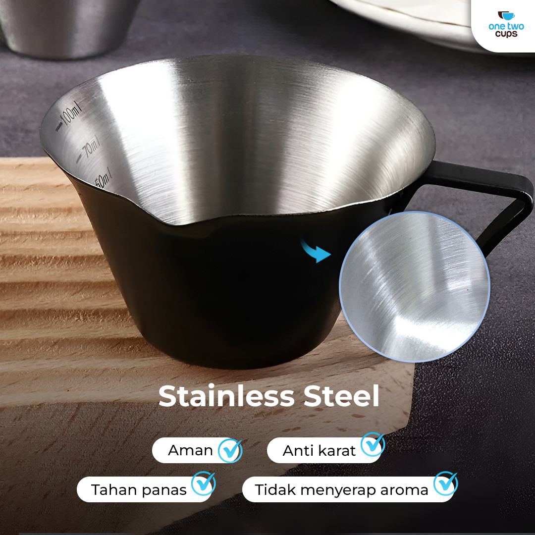 | Awet dan Berkualitas Anda dapat menggunakan gelas takar kopi untuk membuat aneka jenis minuman. Suhu panas dan dingin bukan masalah karena produk terbuat dari stainless steel dengan ketahanan suhu tinggi. |