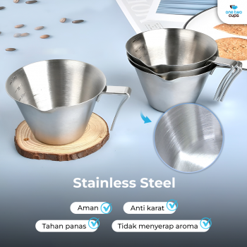 | Awet dan Berkualitas Anda dapat menggunakan gelas takar kopi untuk membuat aneka jenis minuman. Suhu panas dan dingin bukan masalah karena produk terbuat dari stainless steel dengan ketahanan suhu tinggi. |