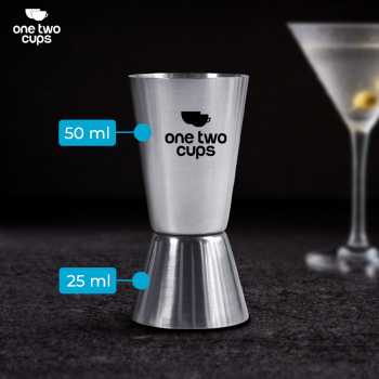 | Dua Kapasitas Berbeda Tak perlu mengganti gelas ukur untuk meracik minuman yang berbeda. Jigger bartender dari One Two Cups mengadopsi desain double jigger dengan dua cup di sisi berlawanan. Kedua cup memiliki kapasitas takar berbeda. Anda pun bisa meracik minuman dengan takaran berbeda hanya dengan satu jigger. |