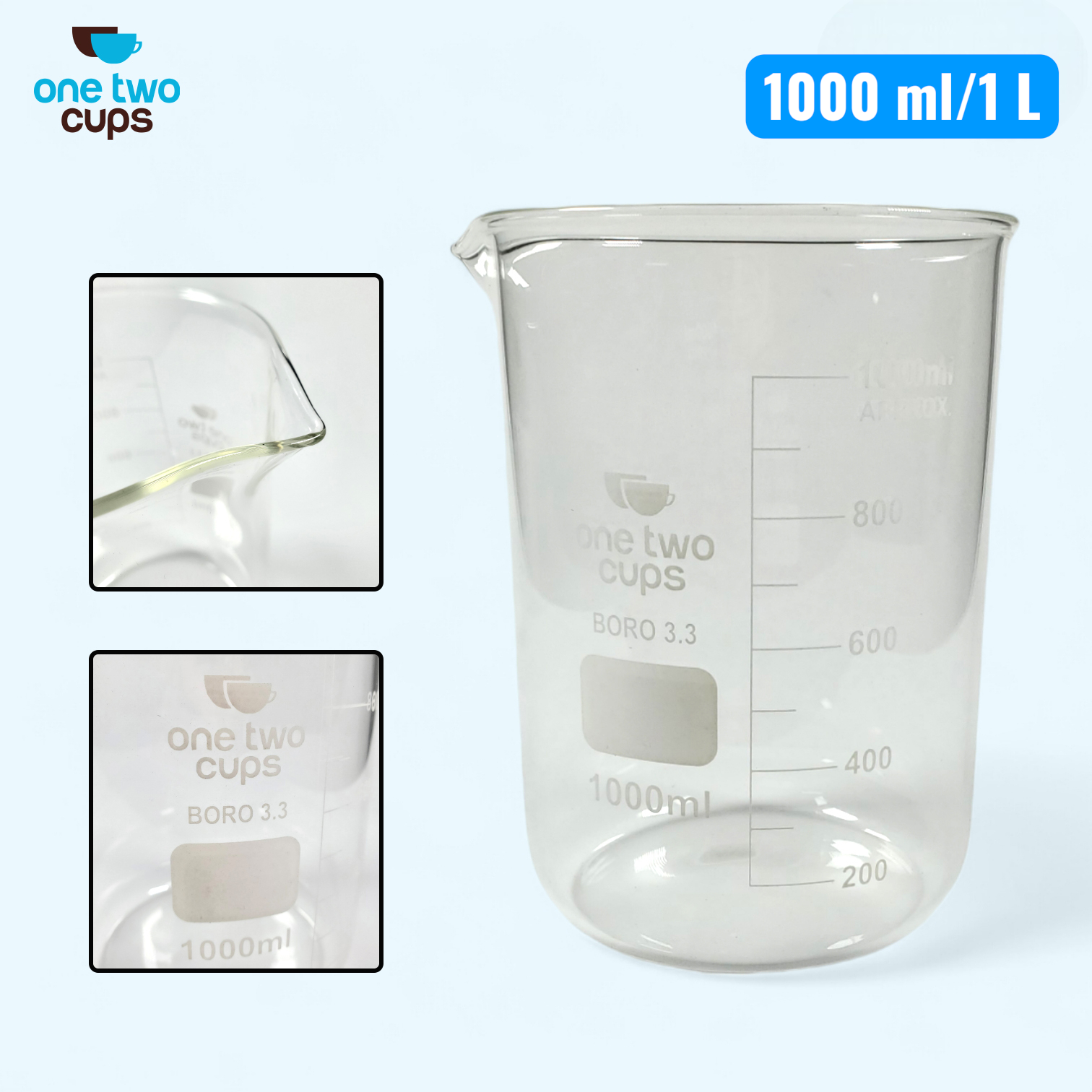 Gelas ukur serbaguna dari One Two Cups, terbuat dari kaca borosilikat tahan panas dengan skala ml jelas. Cocok menakar cairan maupun serbuk, ergonomis dengan mulut penuang runcing agar tidak tercecer. Tersedia ukuran 100 ml hingga 1000 ml/1 L, aman, praktis, dan bisa dipakai berulang kali.