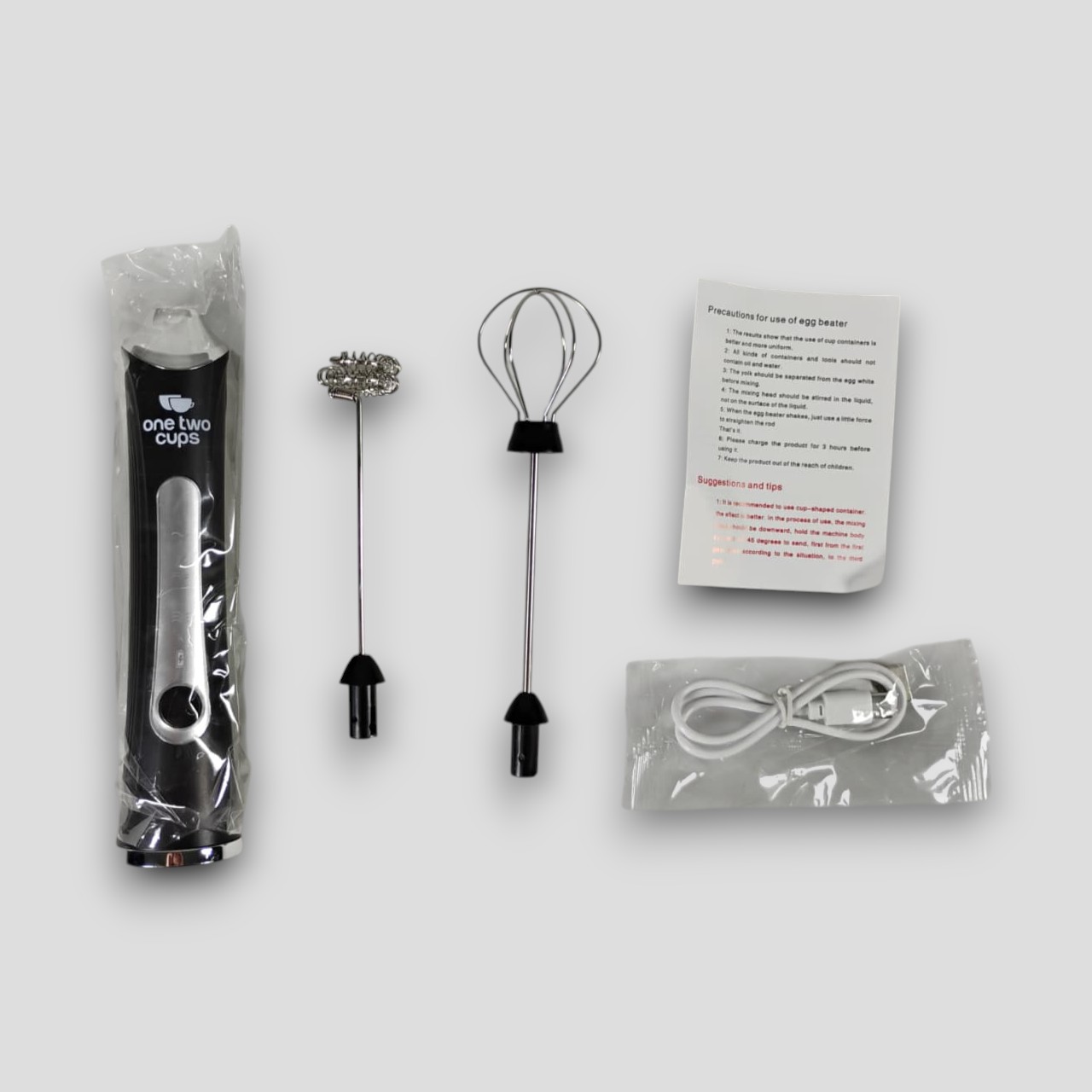 Milk Frother multifungsi dengan desain ergonomis, 3 level kecepatan (4500-8000 RPM), dan tombol satu sentuhan. Cocok untuk mengocok telur, krim, atau minuman favorit Anda, praktis, presisi, dan nyaman digunakan setiap hari.