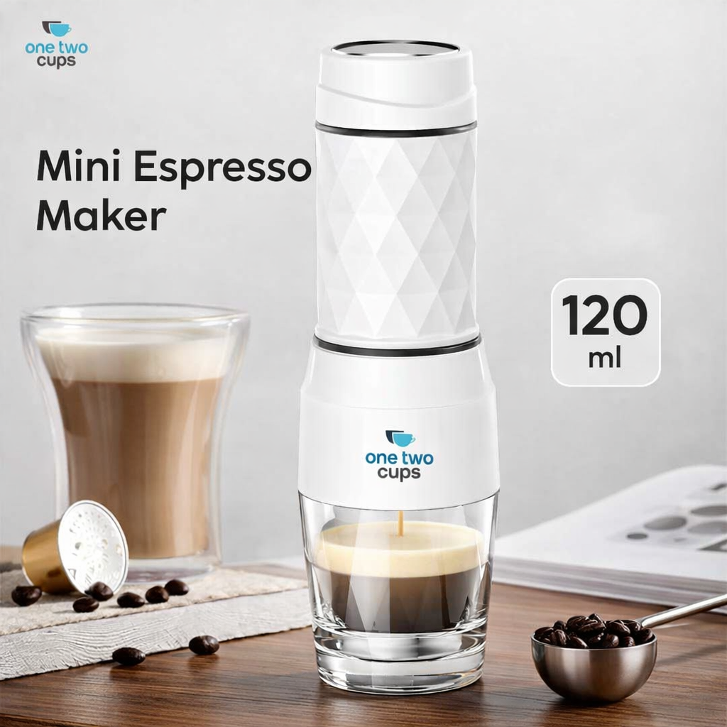 One Two Cups Hand Press Mini Nespresso Coffee Maker 3in1 20 Bar 120ml - HS-8439 - White
