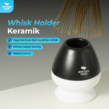 Whisk stand dari bahan keramik cegah pengaduk rusak dan berubah bentuk. Dibuat menyesuaikan bentuk chasen, stand ini menjaga tangkai tidak mekar atau patah saat disimpan.