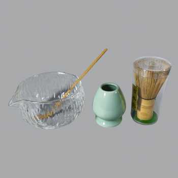 Chasen: Bambu Stand Chasen: Keramik Chawan: Kaca Chasaku: Bambu