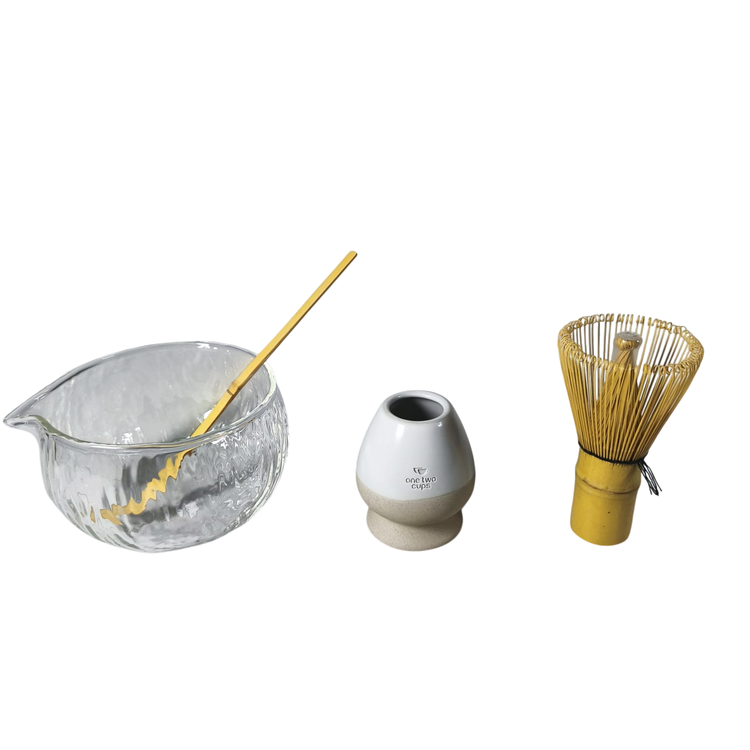 Hasilkan matcha otentik ala Jepang dengan menyeduhnya menggunakan matcha set dari One Two Cups. Hasilkan buih matcha lembut dan creamy dengan chasen bambu alami. Chawan kaca berkapasitas 470 ml dapat digunakan untuk membuat beberapa cangkir matcha sekaligus. Lengkap dengan chasaku untuk memudahkan Anda mengambil dan menakar bubuk matcha. Cocok untuk penggunaan sehari-hari di rumah hingga cafe profesional.