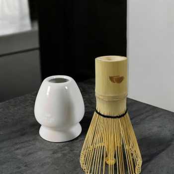 | Set Matcha 4-in-1 Kit Set One Two Cups mencakup empat alat tradisional Jepang untuk menyiapkan matcha dengan sempurna. Chasen, whisk bambu dengan 100 helai lentur, menghasilkan busa halus dan tekstur matcha yang ideal. Chashaku, scoop bambu, memastikan takaran matcha yang tepat. Chasen Stand berfungsi menyimpan whisk bambu dengan aman dan elegan setelah digunakan. Sementara itu, sendok bambu membantu menambah air panas secara perlahan untuk pencampuran yang merata, menghasilkan matcha yang sempurna setiap kali. |