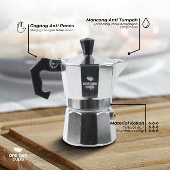 Nikmati sensasi kopi espresso moka pot khas Italia dengan moka pot One Two Cups yang praktis dan mudah digunakan. Alat seduh kopi ini dirancang untuk menghasilkan kopi espresso rumahan dengan cita rasa kuat, aroma kaya, dan karakter autentik layaknya coffee shop. Cocok untuk pemula maupun pecinta kopi, moka pot aluminium alloy ini menjadi solusi ideal bagi Anda yang ingin menyeduh kopi manual brew, kopi hitam pekat, dan espresso tanpa mesin di rumah.