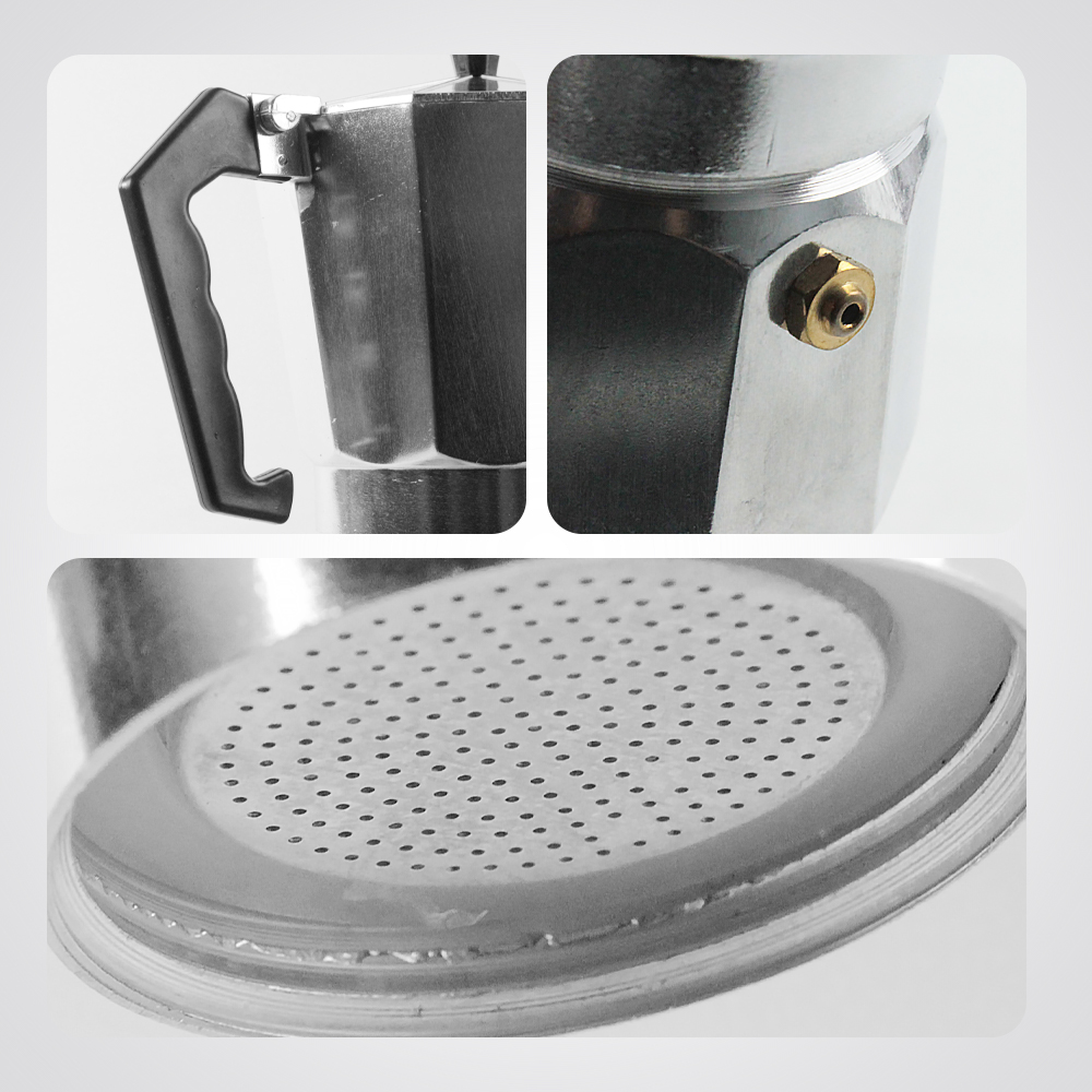 🔹 Gagang ergonomis memudahkan proses pengambilan dan penuangan isi moka pot tanpa rasa panas.
