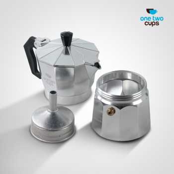Nikmati sensasi kopi espresso moka pot khas Italia dengan moka pot One Two Cups yang praktis dan mudah digunakan. Alat seduh kopi ini dirancang untuk menghasilkan kopi espresso rumahan dengan cita rasa kuat, aroma kaya, dan karakter autentik layaknya coffee shop. Cocok untuk pemula maupun pecinta kopi, moka pot aluminium alloy ini menjadi solusi ideal bagi Anda yang ingin menyeduh kopi manual brew, kopi hitam pekat, dan espresso tanpa mesin di rumah.