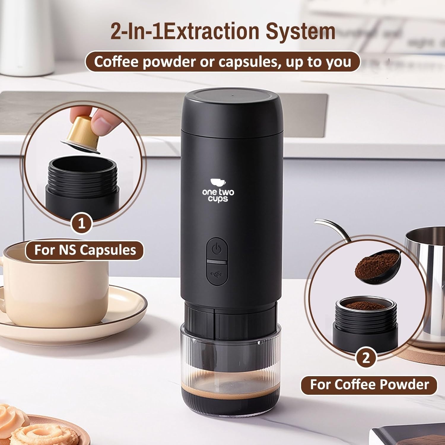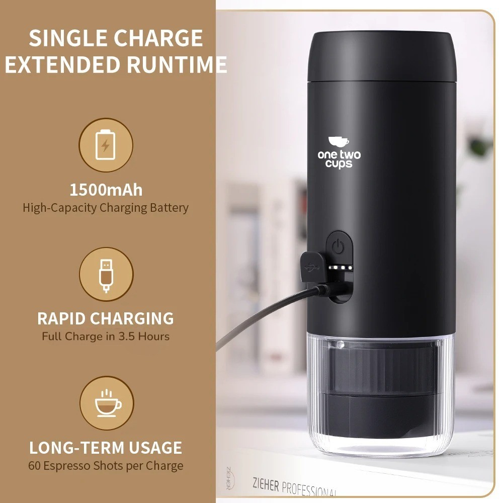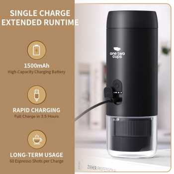 Sering kesulitan menyeduh kopi saat traveling? Kini One Two Cups menghadirkan portable coffee maker untuk para traveler sekaligus pencinta kopi. Dilengkapi dengan tekanan 20 bar yang mampu megekstrak kopi secara maksimal. Anda bisa melakukan ekstraksi panas atau dingin, kopi bubuk atau kopi kapsul sesuai dengan selera Anda. Dibekali dengan baterai bawaan 1500 mAh, Anda bisa menyeduh kopi hanya dengan sekali klik saja.