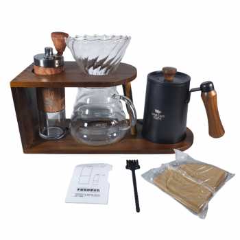 | Lengkap dan Elegan Dengan satu paket ini, kamu mendapatkan komponen kopi esensial yang tertata rapi dan siap pakai. Mulai dari stand kayu, penggiling manual untuk biji kopi, filter kertas, teko seduh, corong filter, dan teko server. Semua komponen dirancang agar bekerja sinergis memberikan pengalaman seduh yang mudah dan konsisten. |