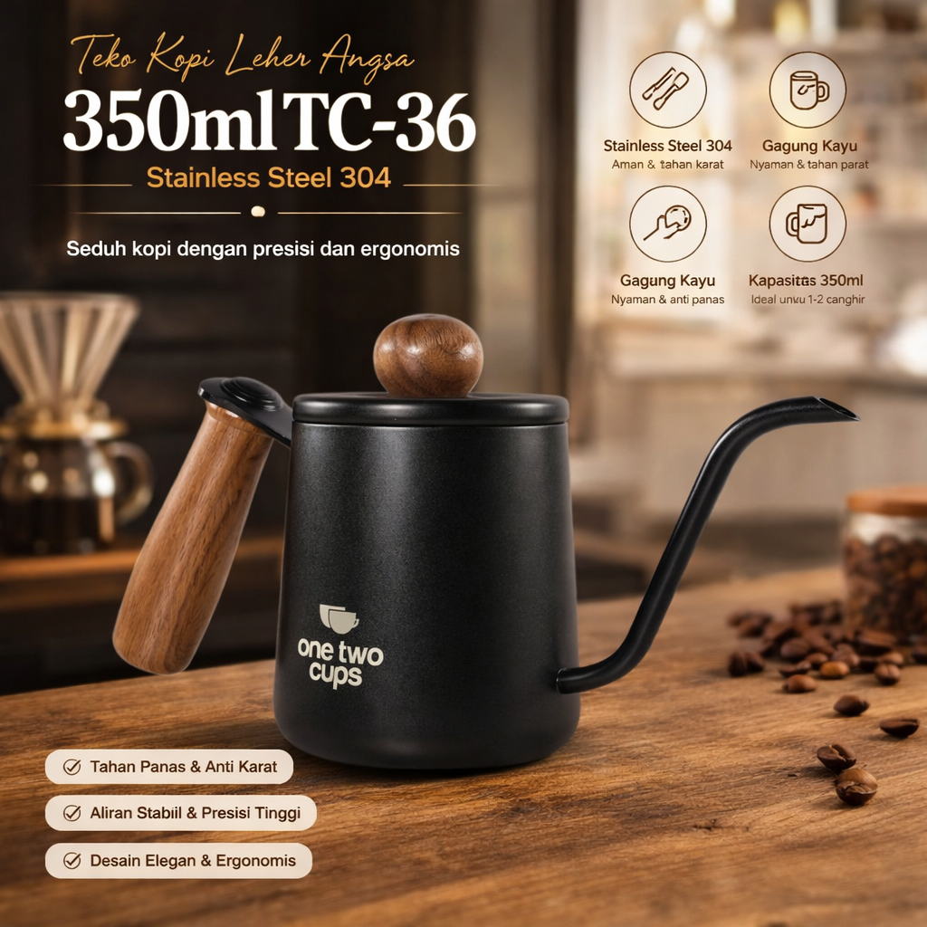 Nikmati pengalaman seduh kopi ala café langsung dari rumah! Teko kopi leher angsa dari One Two Cups dirancang khusus untuk pecinta manual brew yang mengutamakan presisi dan kontrol dalam setiap tetesan air. Dengan material Stainless Steel 304, teko ini tahan suhu tinggi, anti karat, dan aman digunakan dalam jangka panjang. Tersedia dua pilihan kapasitas (350 ml dan 600 ml) yang bisa disesuaikan dengan kebutuhan seduh Anda.