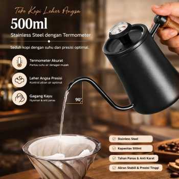 | Aliran Air Presisi Teko yang satu ini cocok digunakan untuk menyeduh kopi dengan metode pour over. Hal ini berkat leher angsa yang ramping dan melengkung sehingga memungkinkan Anda mengendalikan aliran air dengan presisi tinggi. Kecepatan serta arah aliran air sangat memengaruhi hasil akhir seduhan kopi, sehingga fitur ini menjadi sangat penting. |