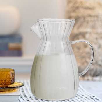 | Desain Bergelombang Elegan dan Artistik Teko kaca ini memiliki desain bergelombang unik pada bagian bodi yang memberikan tampilan modern dan berkelas. Bentuknya tidak hanya menarik secara visual, tetapi juga membantu pegangan lebih stabil saat digunakan. Desain ini membuat teko cocok sebagai wadah saji sekaligus dekorasi meja. |