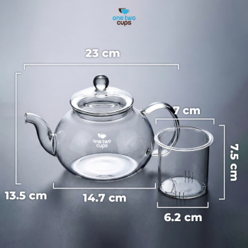 Nikmati secangkir teh sempurna tanpa ampas dengan teko teh kaca dari One Two Cups. Dilengkapi saringan, kini Anda dapat menyeduh dan menyajikan racikan teh favorit untuk keluarga dan tamu hanya dengan satu alat. Teko teh ini juga tahan suhu panas dan tahan api, sehingga Anda dapat memanaskan minuman menggunakan teko teh ini di atas kompor. Perlu diperhatikan, sebelum memanaskan teko di atas kompor, Anda harus mengisinya dengan air untuk mencegah teko retak. Tersedia dalam beberapa pilihan ukuran yang bisa dipilih sesuai kebutuhan.