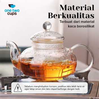 | Material Tahan Panas Kaca borosilikat digunakan sebagai material utama teko agar mampu menahan suhu panas dan dingin. Anda bahkan bisa memanaskan teko secara langsung menggunakan tungku pemanas. Perlu diperhatikan agar mengisi air terlebih dahulu sebelum memanaskan teko, jika teko dalam keadaan kosong saat pemanasan maka dapat menyebabkan kaca retak. |