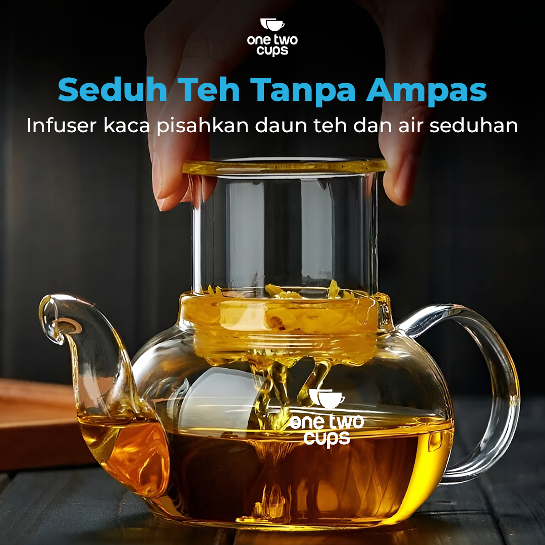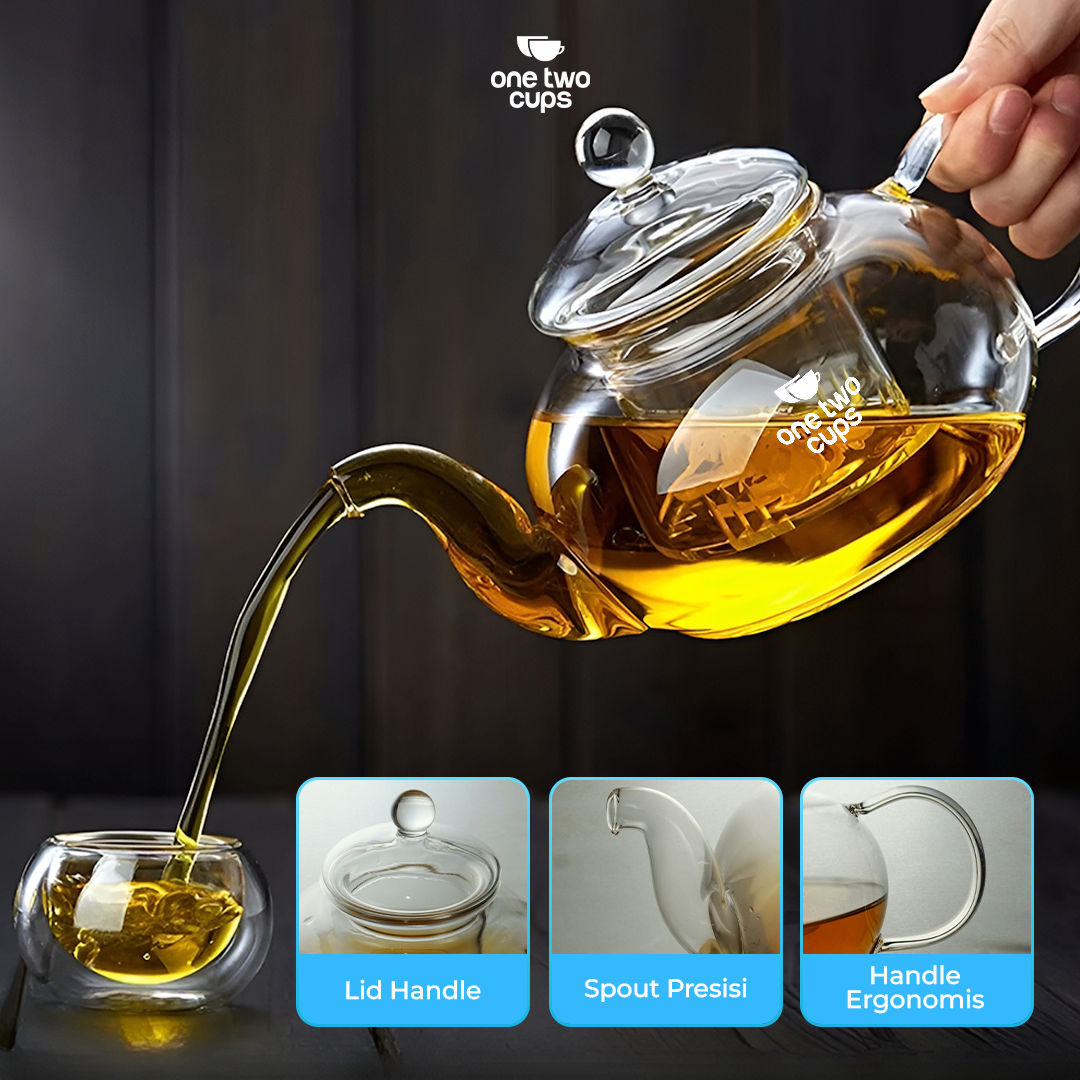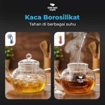 Nikmati secangkir teh sempurna tanpa ampas dengan teko teh kaca dari One Two Cups. Dilengkapi saringan, kini Anda dapat menyeduh dan menyajikan racikan teh favorit untuk keluarga dan tamu hanya dengan satu alat. Teko teh ini juga tahan suhu panas dan tahan api, sehingga Anda dapat memanaskan minuman menggunakan teko teh ini di atas kompor. Perlu diperhatikan, sebelum memanaskan teko di atas kompor, Anda harus mengisinya dengan air untuk mencegah teko retak. Tersedia dalam beberapa pilihan ukuran yang bisa dipilih sesuai kebutuhan.