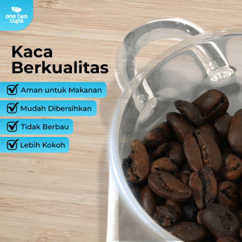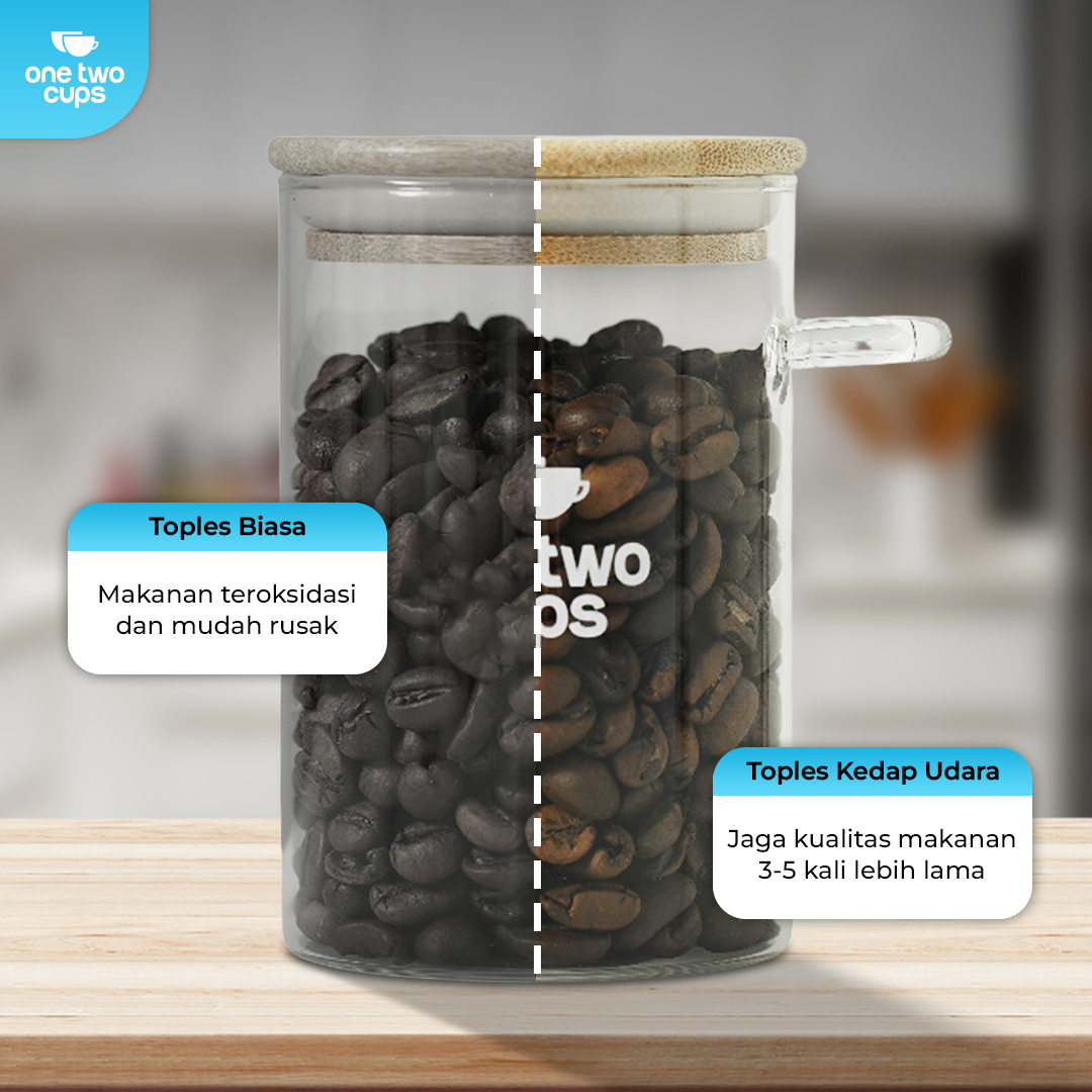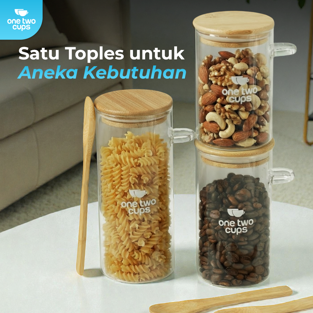 Jaga makanan favorit tetap fresh dan renyah dengan toples kaca One Two Cups. Terbuat dari kaca borosilikat tebal dengan segel kedap udara, kokoh untuk camilan, biji kopi, hingga bahan makanan. Desain minimalis cocok untuk dapur, pantry, atau ruang tamu. Tersedia berbagai ukuran sesuai kebutuhan.