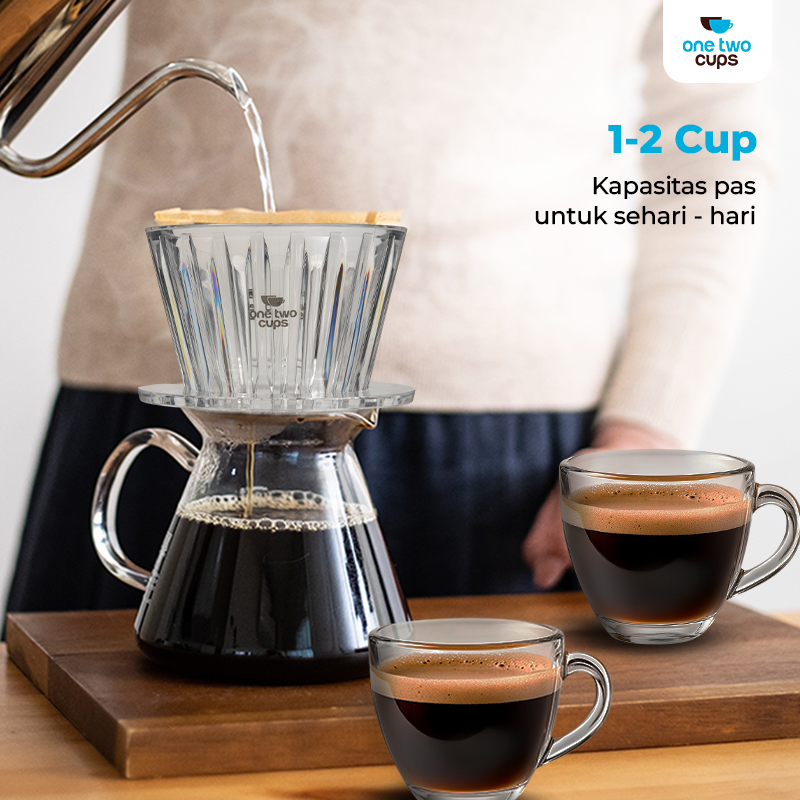 | Kapasitas Pas Menawarkan kapasitas 1-2 cup, V60 coffee dripper ini cocok untuk digunakan sehari-hari. Tak perlu repot menakar ulang jumlah kopi yang dibutuhkan. |