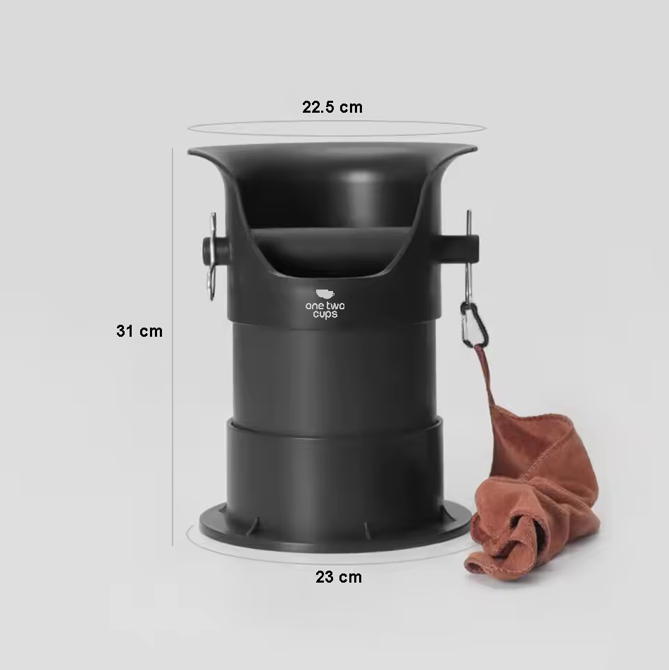 Kotak wadah ampas kopi atau knock box container dari One Two Cups dirancang khusus untuk para pecinta kopi dan barista yang mengutamakan kebersihan saat menyeduh espresso. Dengan material premium dari ABS dan PP yang kuat dan ringan, produk ini menghadirkan kombinasi antara ketahanan, fungsi, dan desain modern. Bentuknya yang vertikal dan ringkas membuatnya mudah ditempatkan di berbagai area, sementara fitur-fitur seperti knockout slot anti-slip dan pengait untuk kain lap memberikan kemudahan dalam proses pembuangan dan pembersihan portafilter.