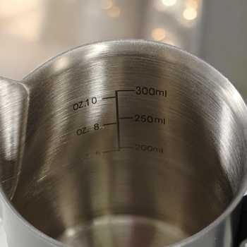 | Skala Ukur Internal yang Akurat Garis takaran di bagian dalam memudahkan pengukuran volume susu secara presisi, menjaga konsistensi hasil seduhan baik untuk satu cangkir maupun beberapa sajian sekaligus. |