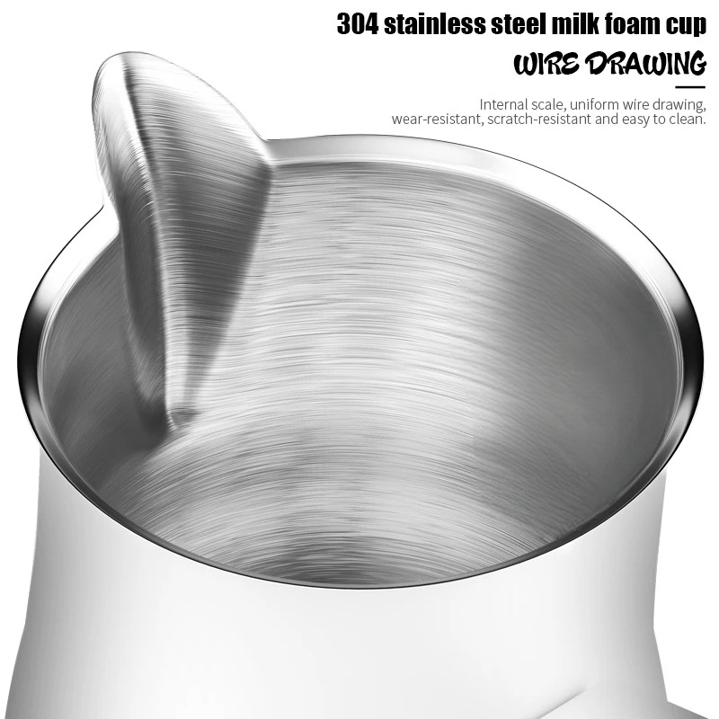 | Material Stainless Steel 304 Premium Terbuat dari stainless steel 304 kelas makanan (food grade) yang tahan karat, tahan panas, dan tidak memengaruhi rasa susu maupun kopi. Permukaan dalam halus memudahkan pembersihan serta menjaga kebersihan penggunaan sehari-hari. |
