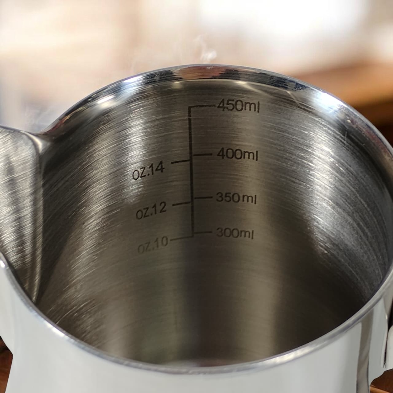 | Skala Ukur Internal yang Akurat Garis takaran di bagian dalam memudahkan pengukuran volume susu secara presisi, menjaga konsistensi hasil seduhan baik untuk satu cangkir maupun beberapa sajian sekaligus. |