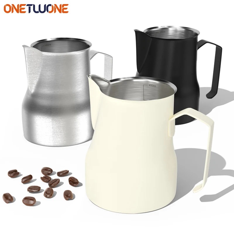 Home AppliancePerlengkapan Dapur & Ruang MakanMesin Kopi & TehOneTwoOne Teko Kopi Milk Frothing Pitcher Stainless Steel Crane Mouth 350ml - AA050