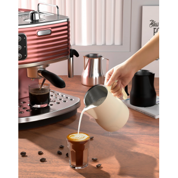 OneTwoOne teko kopi milk frothing adalah pilihan ideal bagi pecinta kopi yang menginginkan hasil latte art lebih presisi dan profesional. Dibuat dari stainless steel 304 berkualitas tinggi, pitcher ini tahan karat, kuat, dan aman untuk penggunaan jangka panjang. Desain mulut teko berbentuk crane mouth memungkinkan aliran susu yang stabil dan terkontrol, sehingga memudahkan pembuatan berbagai pola latte art dengan detail yang rapi. Tersedia dalam varian 350 ml dan 480 ml, produk ini cocok digunakan baik untuk kebutuhan rumahan maupun kafe. Dengan desain elegan dan ergonomis, pitcher ini tidak hanya fungsional tetapi juga mempercantik setup coffee corner Anda.
