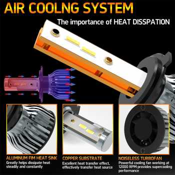 | Turbo Fan dan Material Alumunium Heatsink Dilengkapi kipas pendingin (turbo fan) yang bekerja aktif untuk menjaga suhu lampu tetap stabil. Material aluminium alloy berfungsi sebagai heatsink untuk mempercepat pelepasan panas. Kombinasi ini membuat lampu lebih awet dan tidak mudah overheat. |