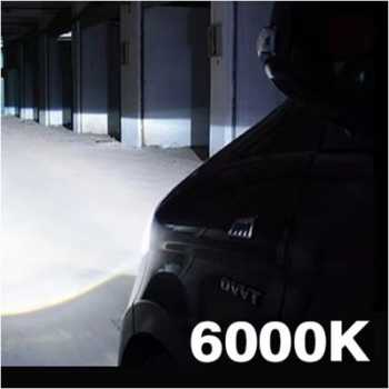 | Warna Cahaya 6000 K Cool White Menghasilkan warna putih 6000 K yang terlihat modern dan lebih nyaman di mata. Cahaya putih membantu pengemudi melihat objek di jalan dengan lebih detail dan kontras. Sangat efektif digunakan saat malam hari maupun kondisi minim cahaya. |