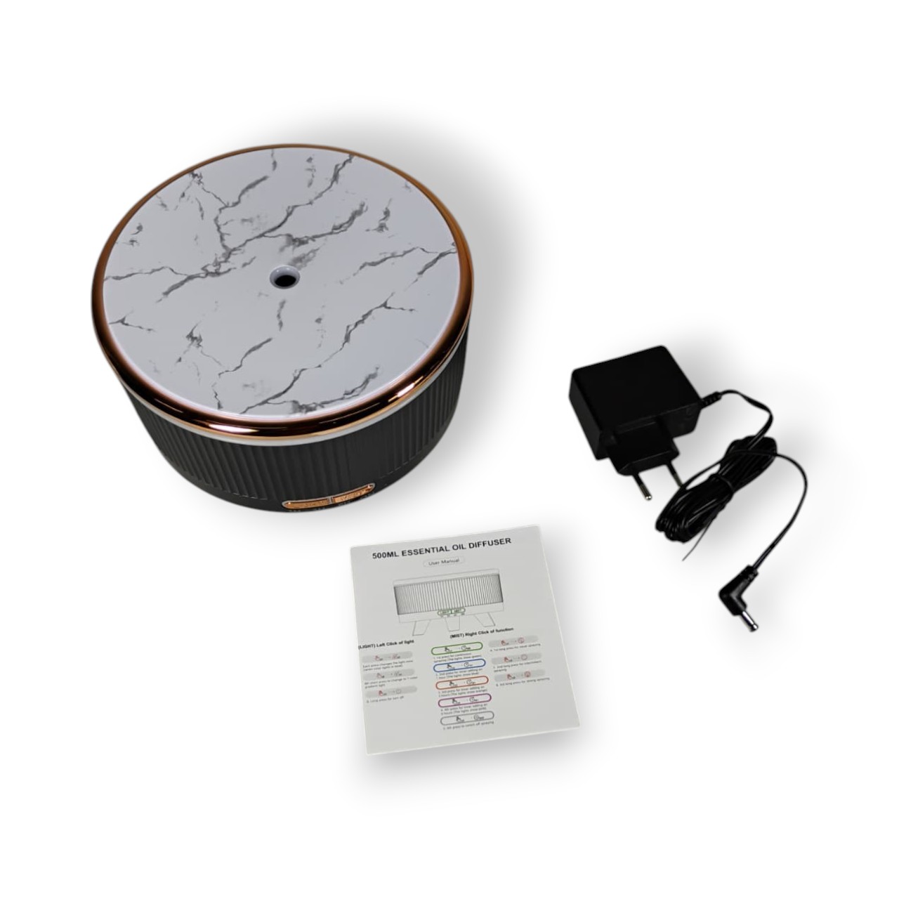 Nikmati pengalaman aromaterapi premium dengan diffuser berteknologi ultrasonik senyap 2.4 MHz yang menjaga kualitas essential oil tanpa panas. Tangki besar 500 ml mendukung pemakaian lama, dilengkapi 3 level atomisasi dan timer untuk kontrol fleksibel. Hadir dengan 7 mode lampu ambient yang menenangkan serta desain marmer elegan berbahan ABS kokoh, menjadikannya bukan hanya perangkat fungsional, tapi juga dekorasi estetik untuk ruangan Anda. Cocok digunakan saat bekerja, beristirahat, maupun tidur, dengan penyebaran aroma merata dan hemat energi.