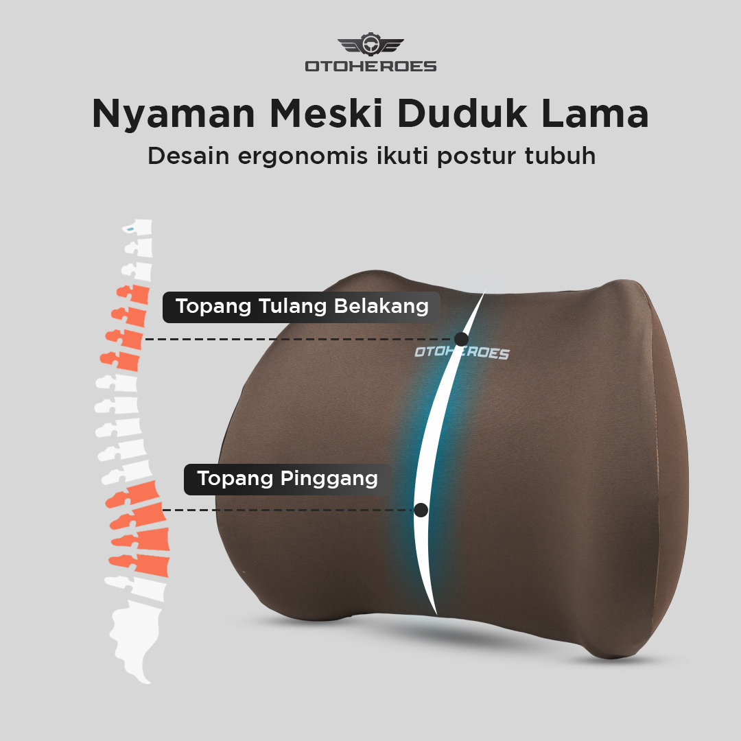 Agar bagian punggung Anda lebih nyaman saat berkendara jarak jauh, gunakan bantal punggung dari OTOHEROES. Bantal ini hadir dengan desain ergonomis yang dipadukan dengan bahan memory foam empuk dan nyaman. Produk ini efektif membantu meredakan stres pada otot di punggung Anda selama perjalanan panjang di mobil.