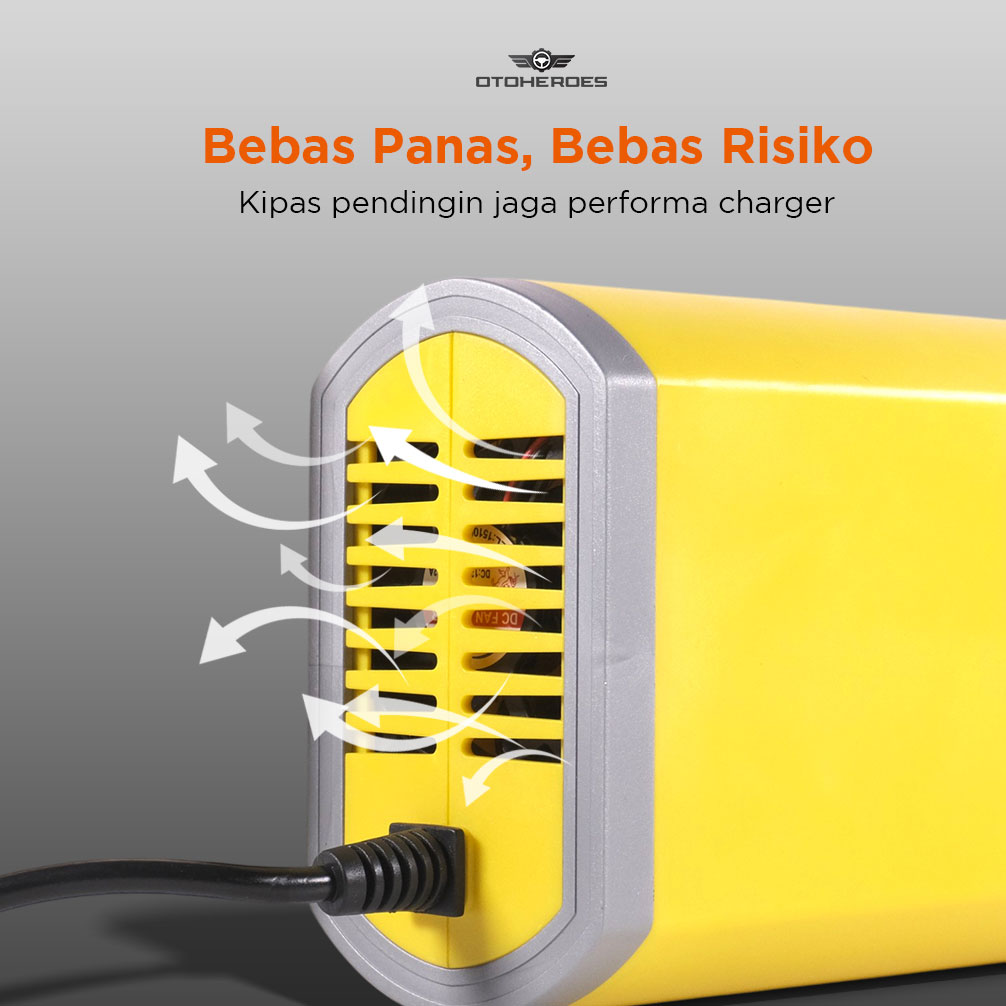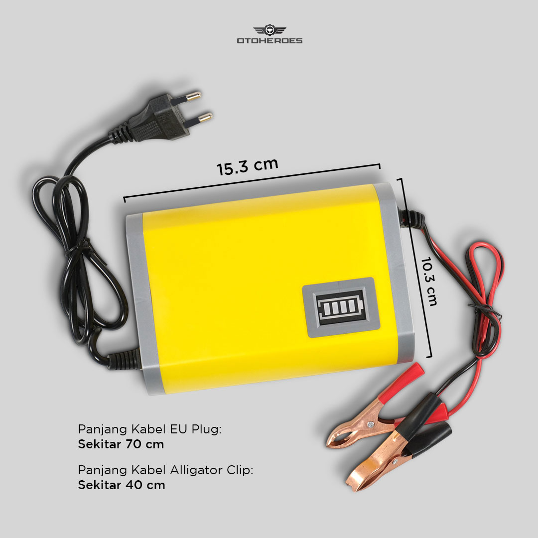 Jaga kendaraan selalu siap digunakan menggunakan charger aki dari OTOHEROES. Charger aki ini siap mengisi daya dengan aman dan efisien untuk aki 12 V berkapasitas 20-80 Ah. Cocok untuk mobil, motor, atau kendaraan lain. Penggunaan mudah, tinggal sambungkan dan pasang klip, tanpa ribet!